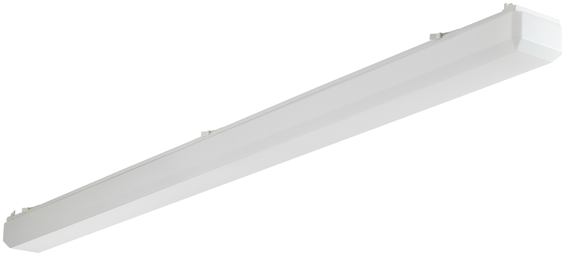 LED-Anbauleuchte, opale Abdeckung mit abgeschrägten Kanten aus Acrylglas (PMMA). Mit einstellbarer Lichtleistung (MultiLumen), im Auslieferungszustand ist der Maximalwert eingestellt. Geeignet für die Montage an Decke und Wand. Leuchtenunterteil aus weiß lackiertem Stahlblech. Schaumstoff-Profildichtung. Eingebauter Geräteträger/Reflektor aus Stahlblech weiß. Riegelverschluss aus Polycarbonat (PC) weiß. 3-polige Anschlussklemme mit Steckkontakt, Durchschleifen möglich. 2 Kabeleinführungen. Zugelassen für den Einsatz im Innenbereich.