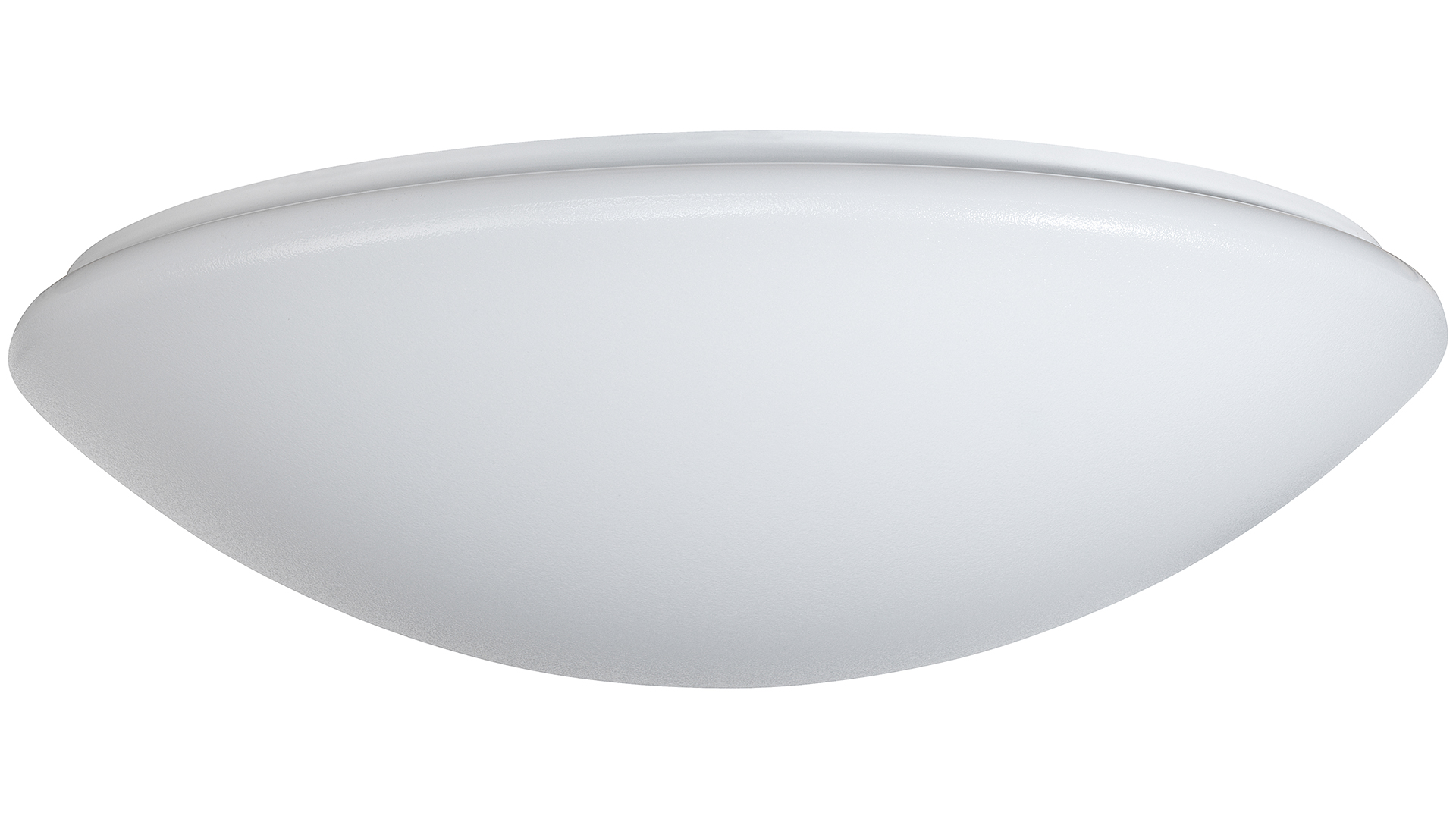 Anbauleuchte für (LED)-Leuchtmittel mit E27 Sockel. Rund mit opaler Abdeckung. Geeignet für die Montage an Decke und Wand. Gehäuse aus profiliertem, weißlackiertem Stahlblech. Bombierte, strukturierte Abdeckung aus UV-beständigem Polymethylmethacrylat (PMMA). Auch mit hochschlagfester Abdeckung aus Polycarbonat (PC) erhältlich. Sicherer Halt der Abdeckung durch Federverschluss. 3-polige Anschlussklemme mit Steckkontakt, Durchschleifen möglich. 2 Kabeleinführungen. Zugelassen für den Einsatz in Innenbereichen.